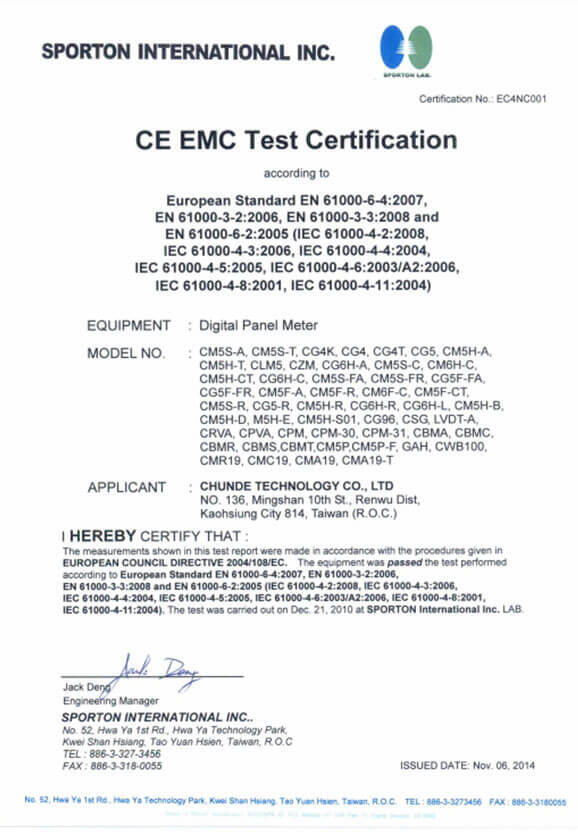 CE認證-儀錶證書