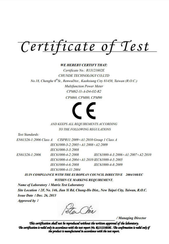 CE認證-集合式電錶證書